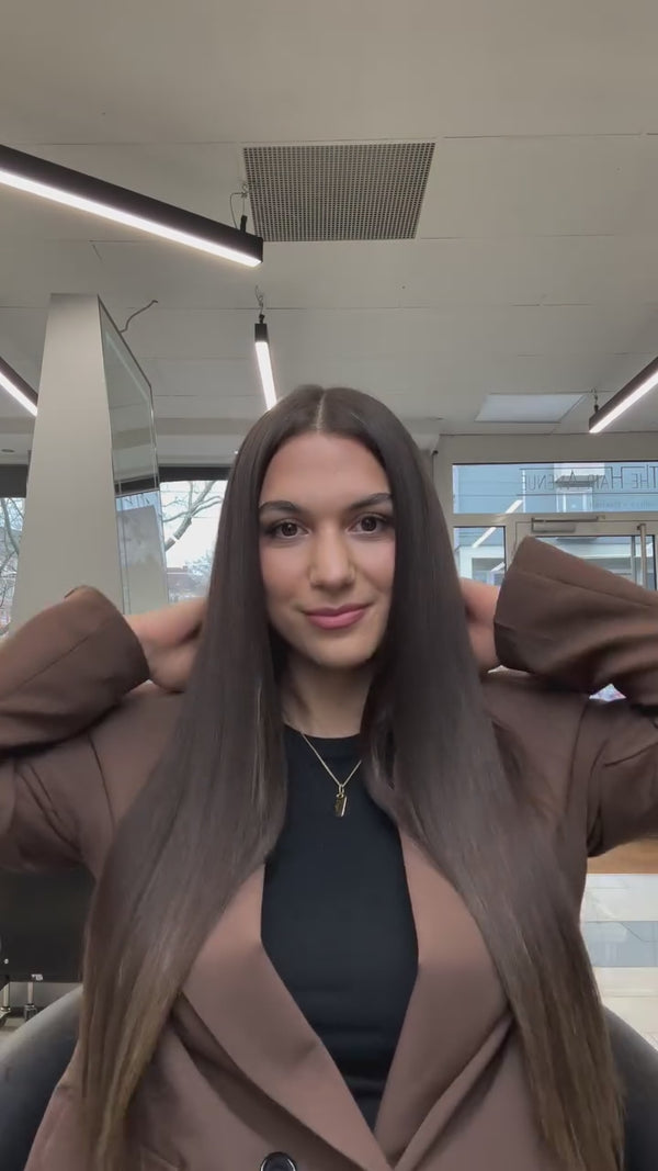 Lass dir von uns im Laden traumhaft lange Haare zaubern und zahle einfach hier mit Klarna.
